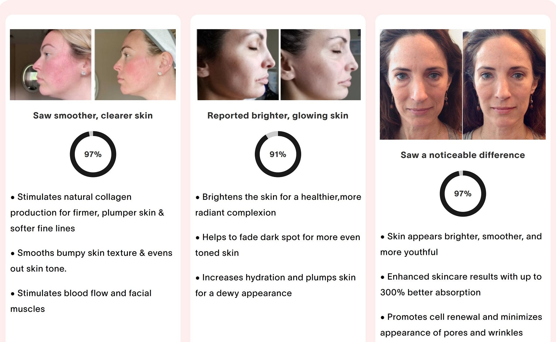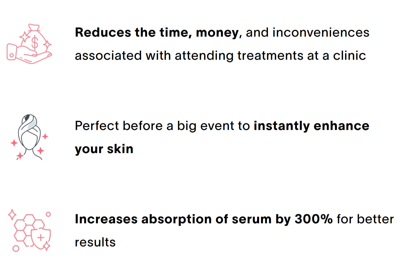 - A virtually painless, safe at-home alternative to in-clinic facials